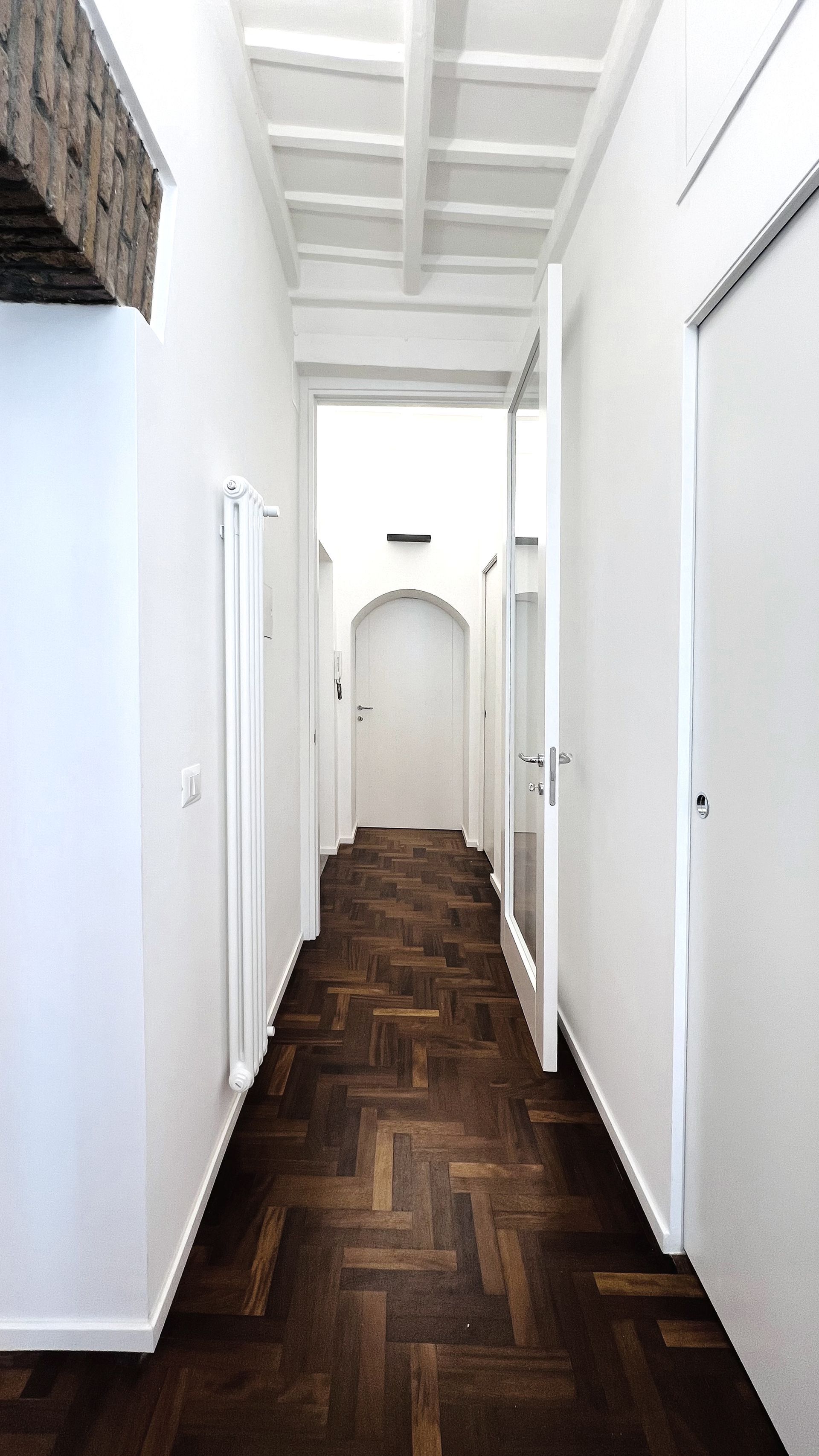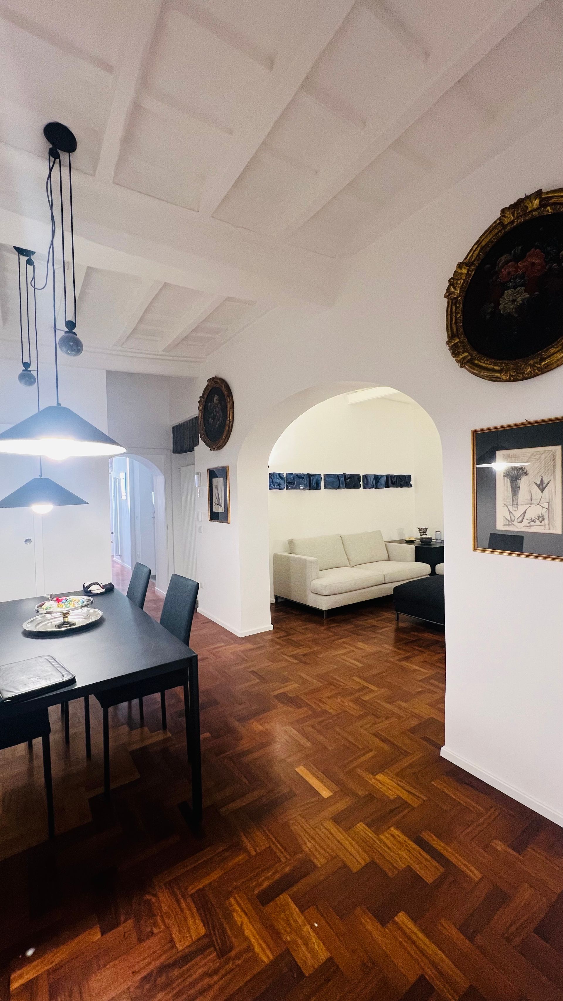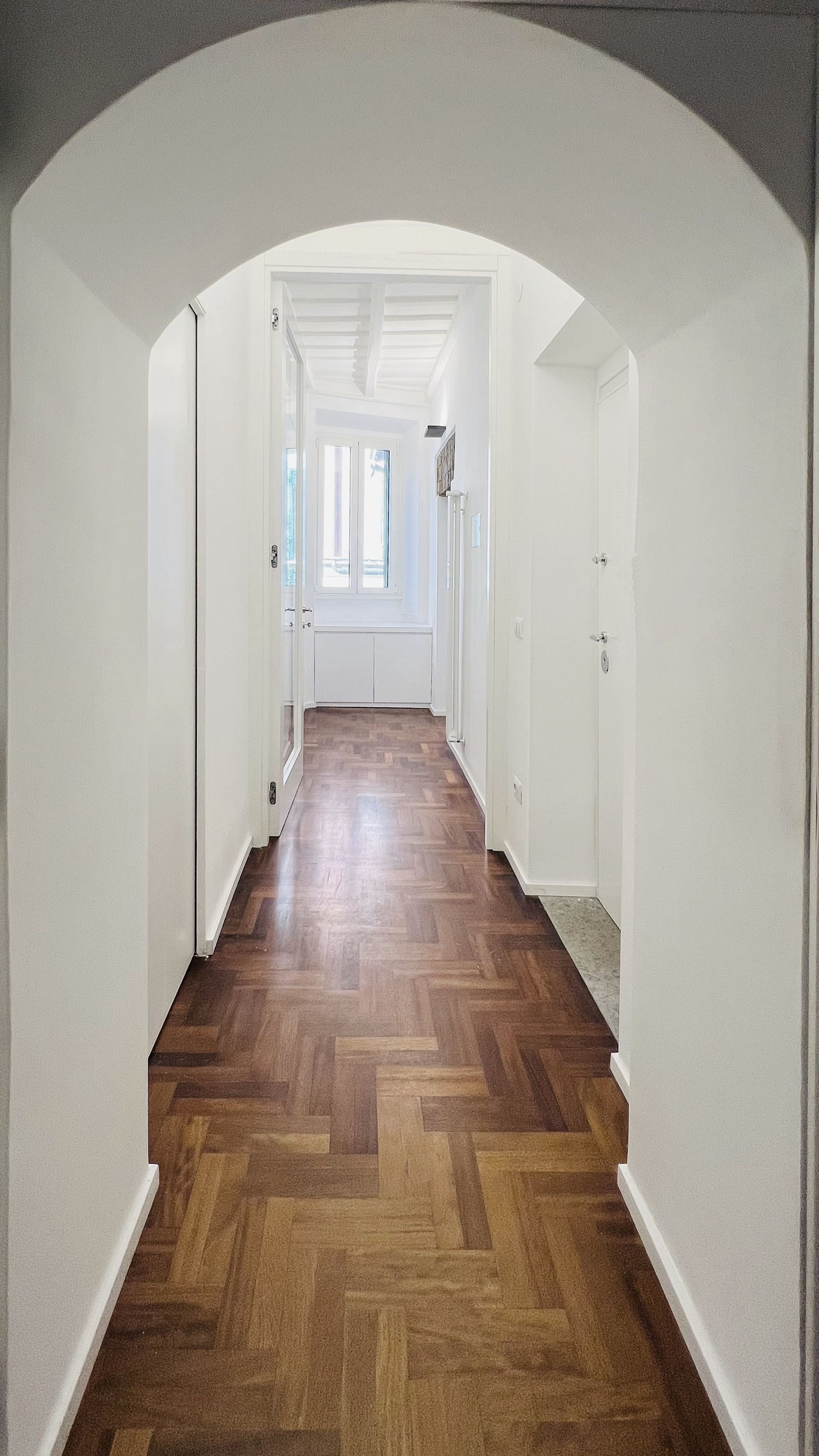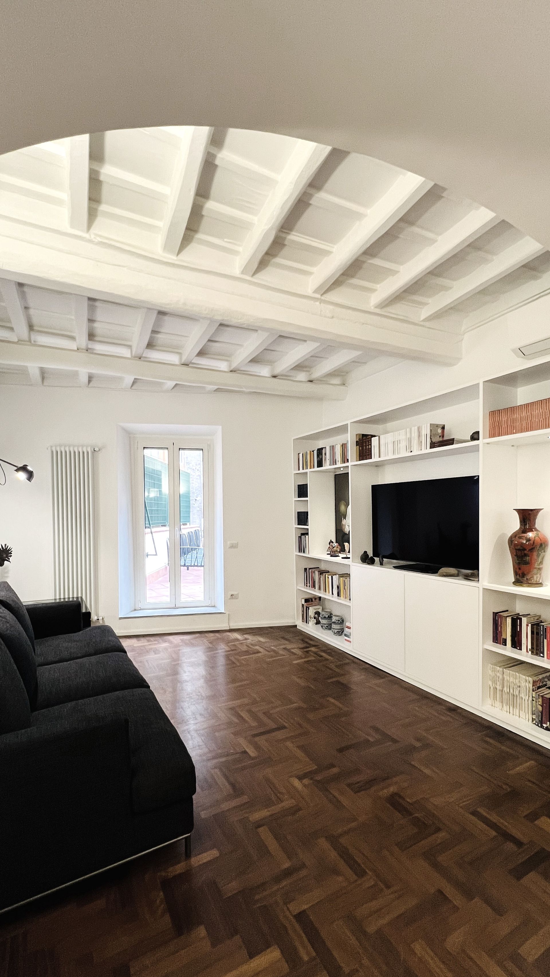 L'incantevole ristrutturazione di questo appartamento sito in Via Vicolo del Cinque a Roma, curata dallo studio di architettura Arch'Idea, si distingue per il suo equilibrio tra design moderno e attenzione ai dettagli storici, creando un ambiente unico e accogliente.
