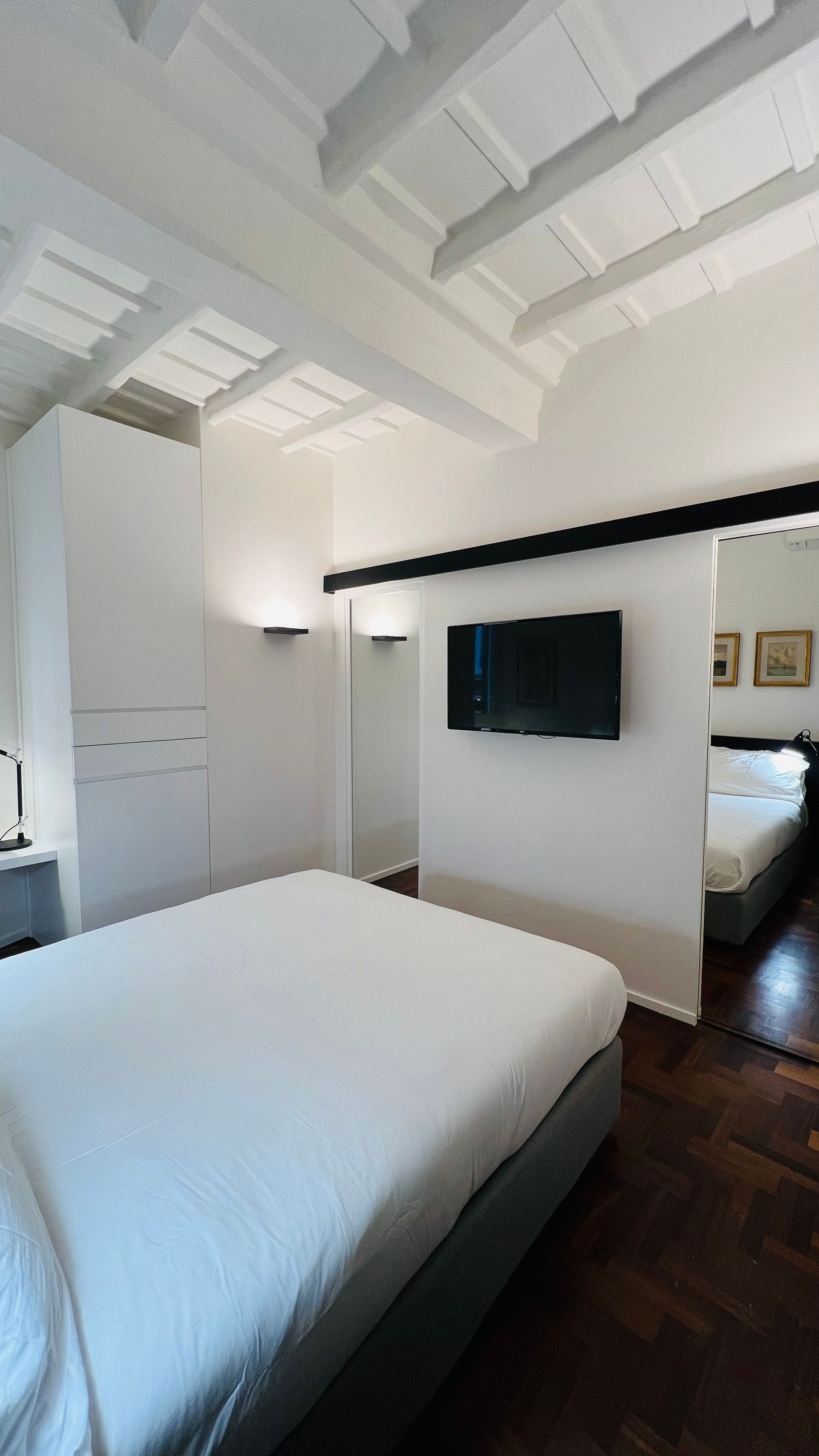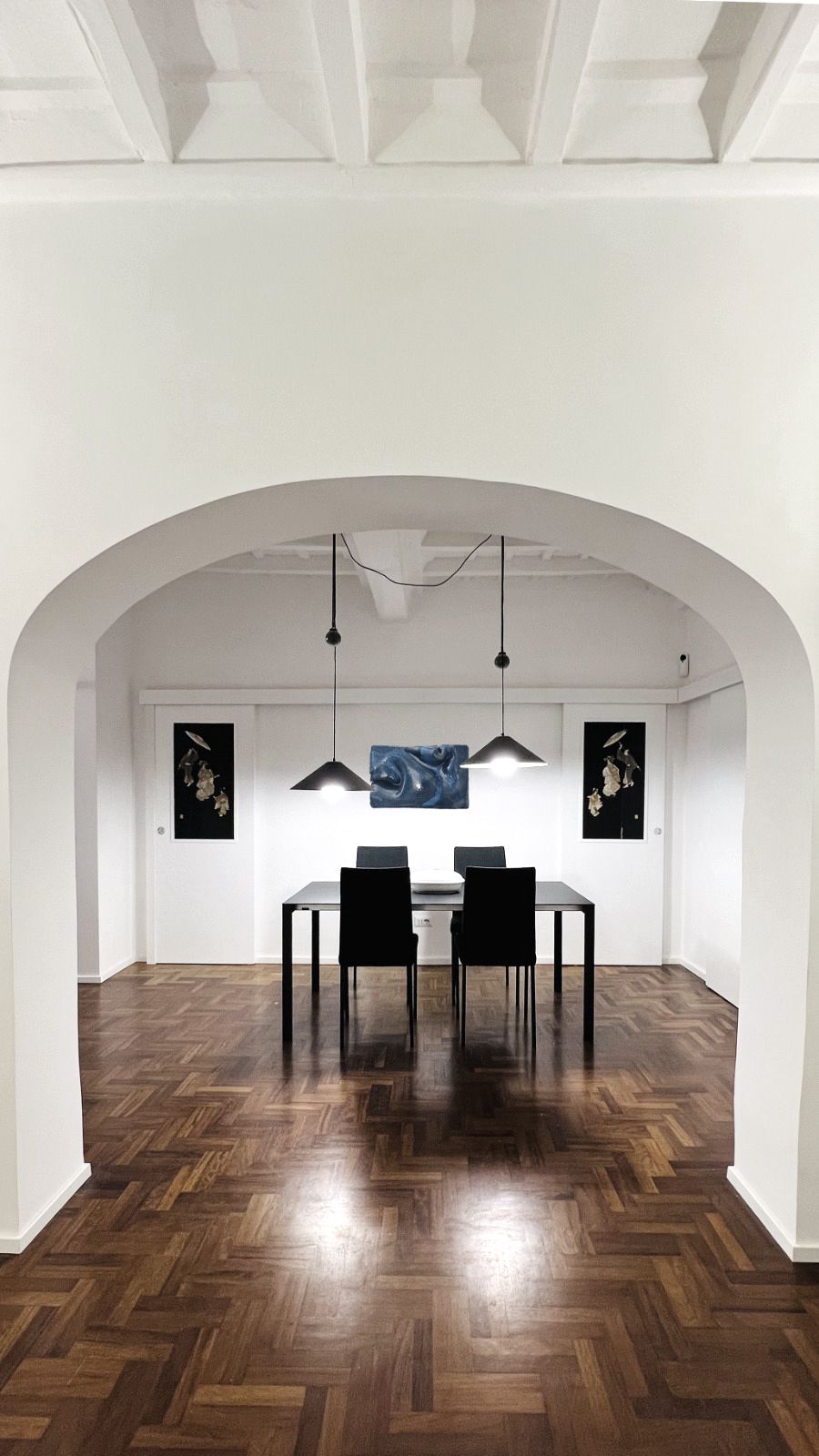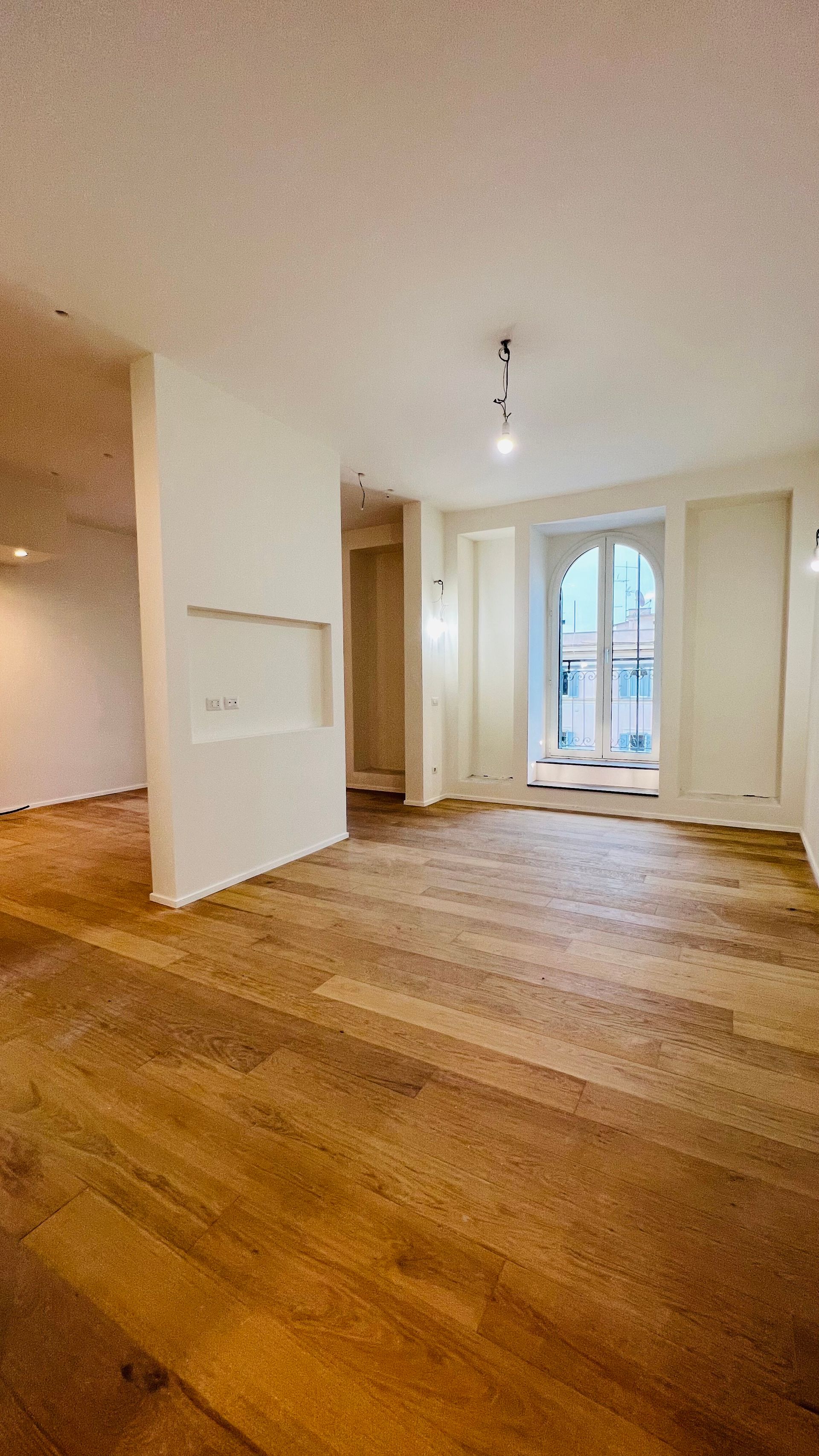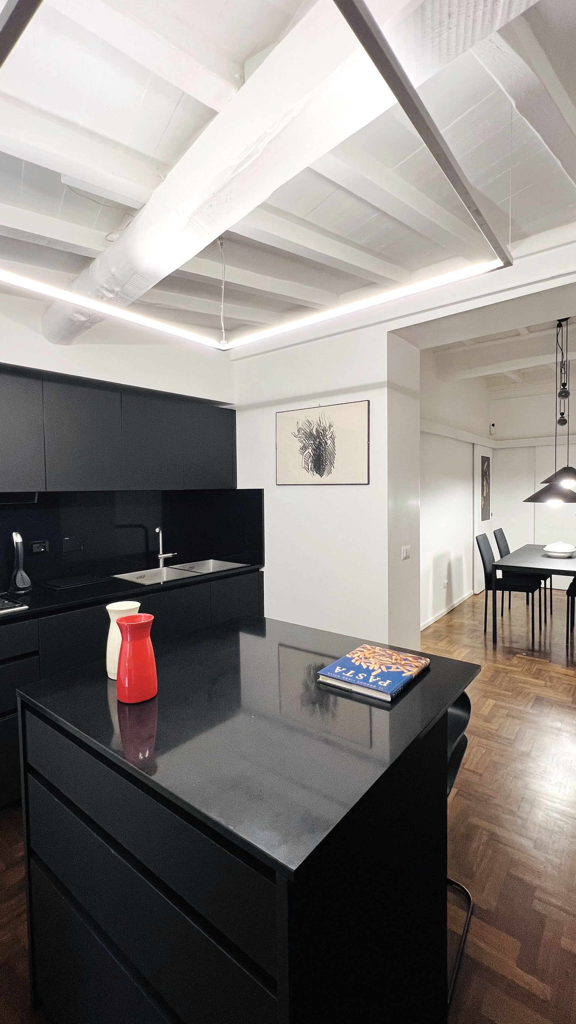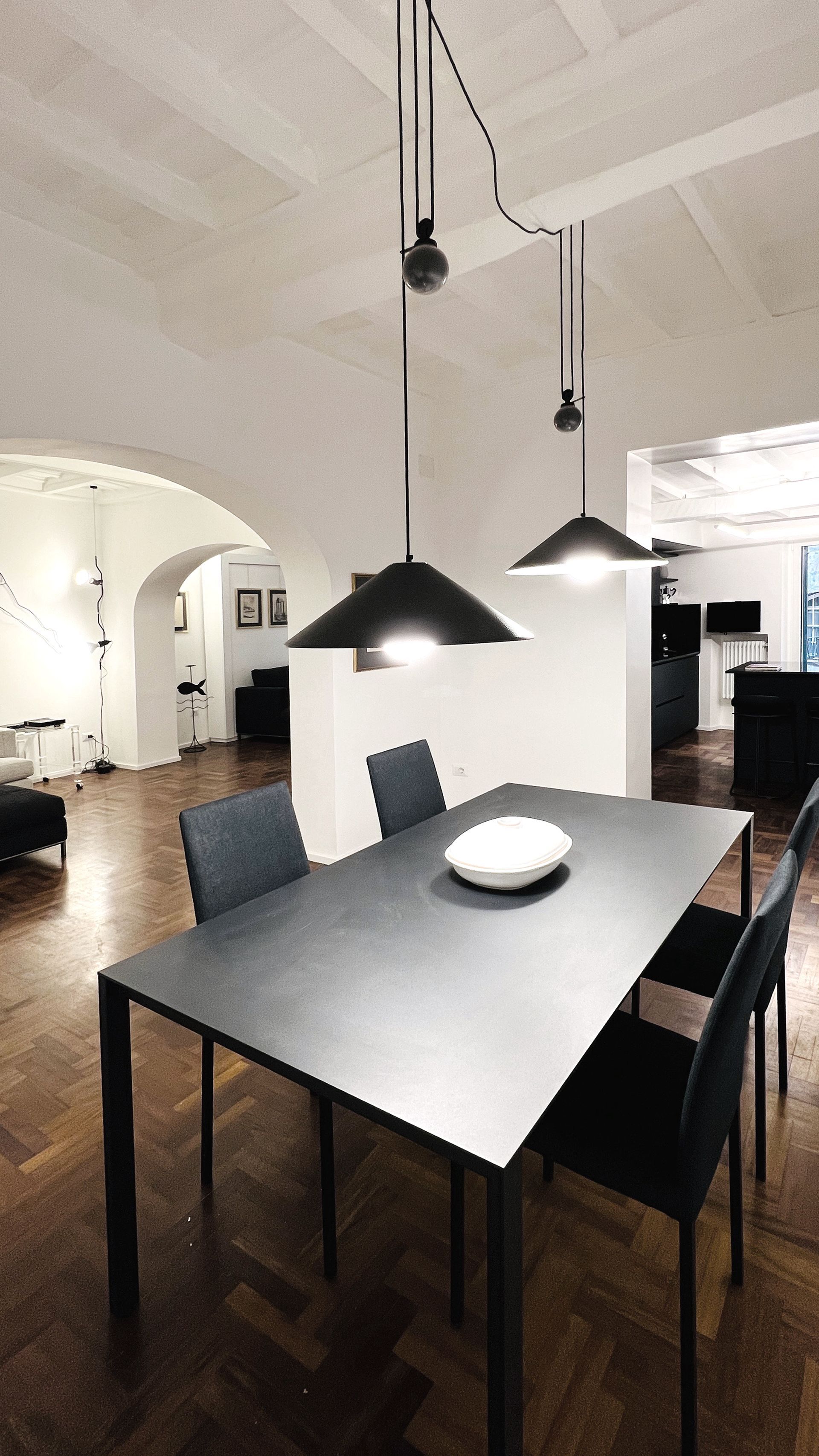 L'incantevole ristrutturazione di questo appartamento sito in Via Vicolo del Cinque a Roma, curata dallo studio di architettura Arch'Idea, si distingue per il suo equilibrio tra design moderno e attenzione ai dettagli storici, creando un ambiente unico e accogliente.